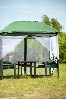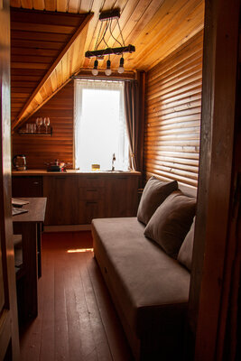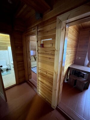 На территории расположилась уютная сауна, способная уместить до шести посетителей. В этой обители релаксации все продумано до мелочей — парная, ведро для обливания и душевая зона. Это место, где можно восстановить силы после активного дня на свежем воздухе, наслаждаясь атмосферой покоя и умиротворения.