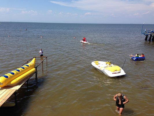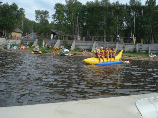 База отдыха имеет большой оснащенный пирс для швартовки катеров и теплоходов с местами для отдыха и рыбалки.