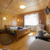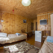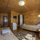 Номера двухместные и одноместные, включают в себя санузел (душ, туалет), телевизор, холодильник. Гостей порадует прекрасно организованное 4-разовое питание. В пансионате работает пункт проката спортивного инвентаря. Любители активного отдыха всегда могут взять на прокат велосипеды.