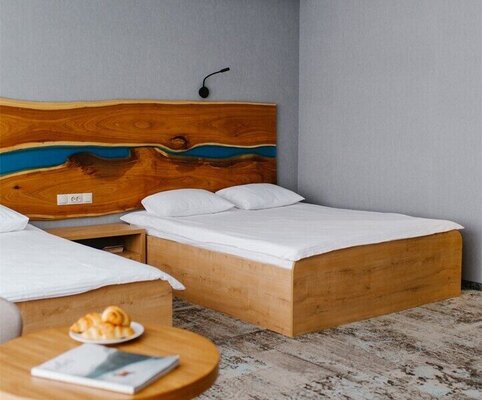 На территории комплекса расположены двухэтажные деревянные жилые корпуса, стилизованные под формы национальной бурятской архитектуры. Всего комплекс способен разместить 228 гостей одновременно в уютных двухместных номерах с современным интерьером. Каждый номер оснащен санузлом с ванной и основными бытовыми удобствами, такими как фен, телевизор, холодильник и электрочайник.