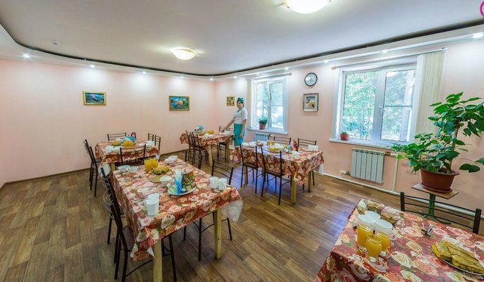Здание пансионата одноэтажное, находится прямо на берегу реки, место тихое, не шумное. Рядом с основным зданием находится отдельно стоящий двухкомнатный домик с новым ремонтом и современной мебелью.
