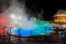 Уникальная особенность термального бассейна — в том, что в воду вы попадаете, в буквальном смысле слова «выныривая» из теплого перехода. Так вы минуете необходимость идти по улице в морозную погоду в одном купальном костюме.