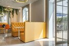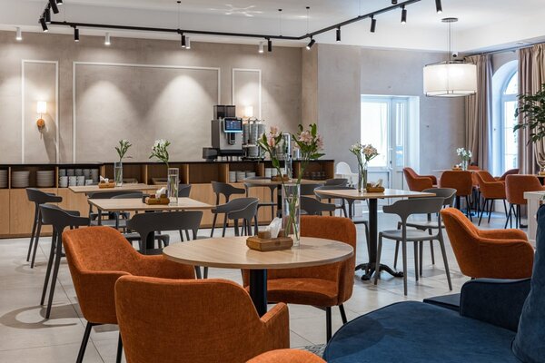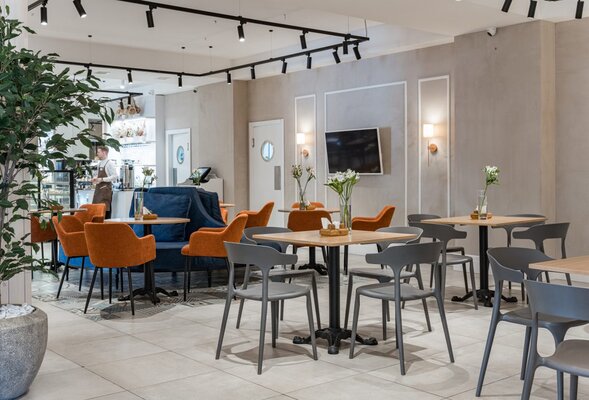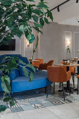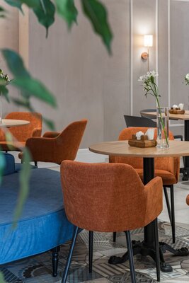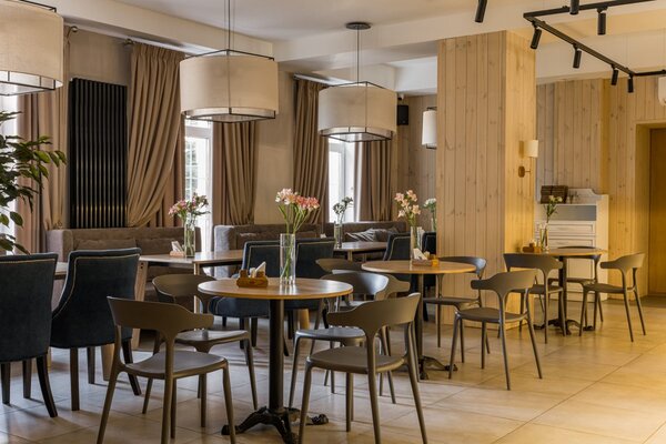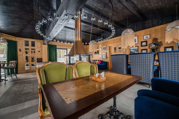 Каминный зала в ресторане Baden Gourmet (это пристрой к зданию ресторана с панорамным видом на бассейны). Уютный и стильный интерьер зала с камином и живым огнём не оставит вас равнодушными. Зал прекрасно подходит для небольших семейных праздников. Часы работы ежедневно с 9:00 до 23:00, кухня до 22:00.