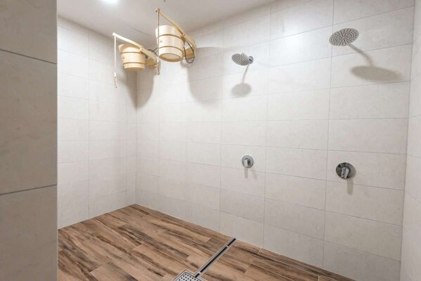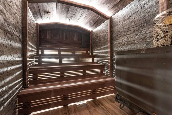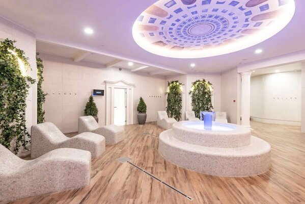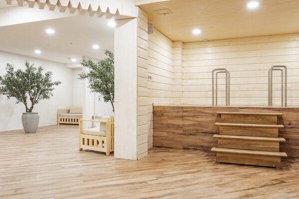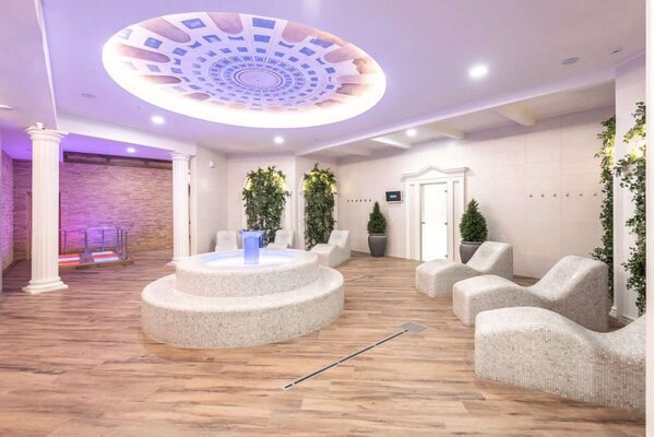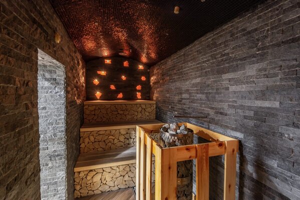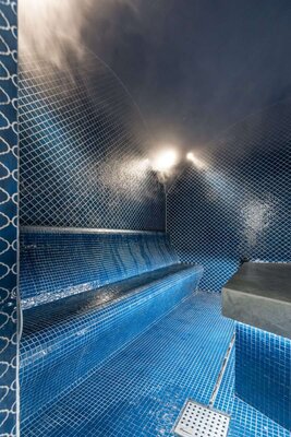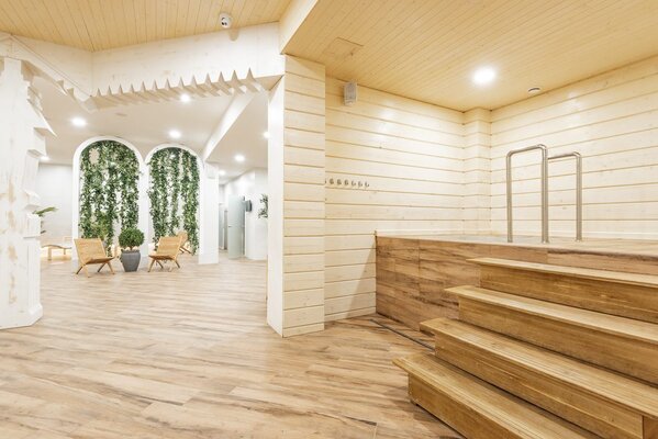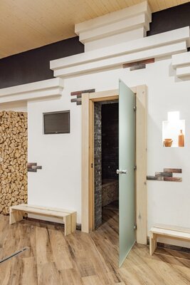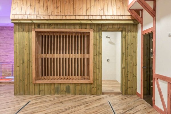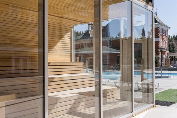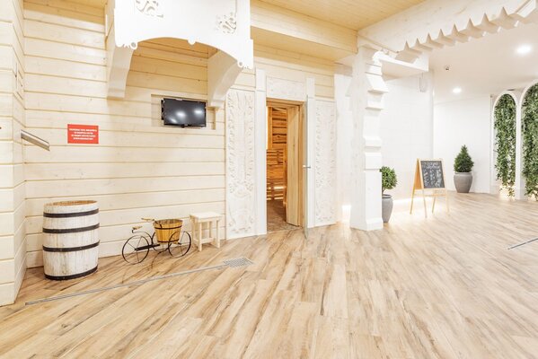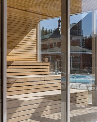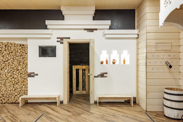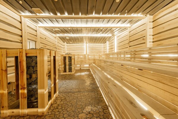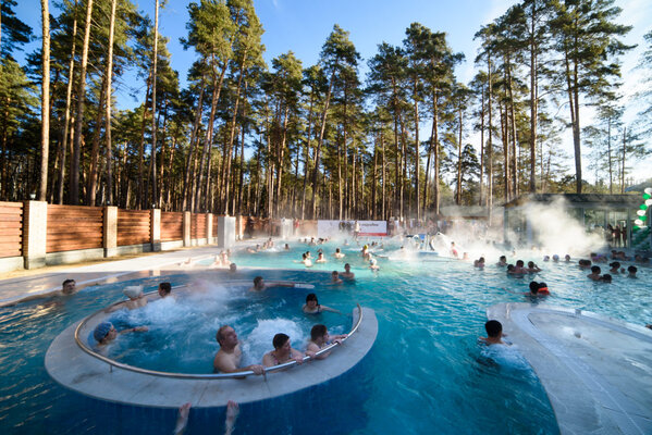 Возле внутреннего бассейна в здании Thermal расположен комплекс саун. Три финские сауны, прогретые до 80, 90 и 100°С, помогут Вам расслабиться после купания. Возле открытого бассейна для Вас также натоплена баня, приятный жар которой (температура достигает 70°С) подарит наслаждение и поднимет тонус.