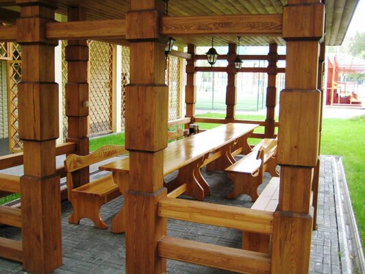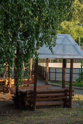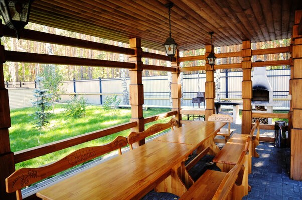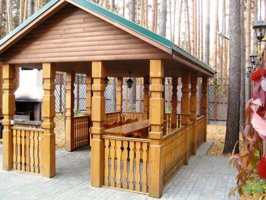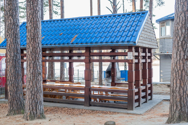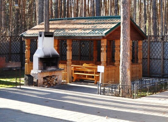 Расположена на территории комплекса. Минимальный срок аренды — 2 часа. Уголь, дрова, розжиг, шампуры/решетки — не включены в стоимость.