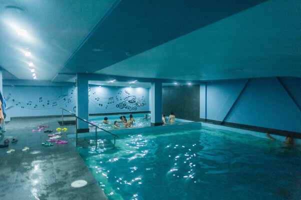 Музыкальный бассейн находится в комплексе Бани народов мира в здании Thermal, на цокольном этаже.