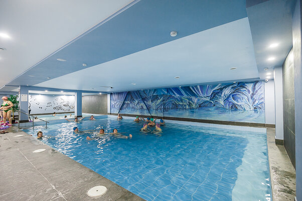К вашим услугам разнообразные водные развлечения. В бассейне имеется специально оборудована детская зона с водопадом — грибком и безопасными ограждениями.