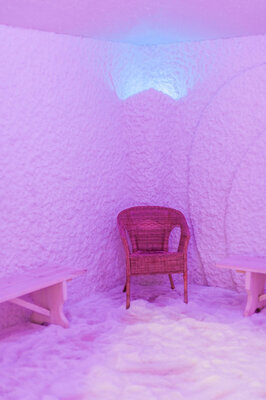 Комната насыщена настоящим морским воздухом, очень полезным для органов дыхания и так необходимым в уральских широтах. Рекомендуемое время посещения: взрослым 50-60 мин., детям 25-30 мин.