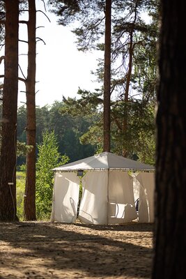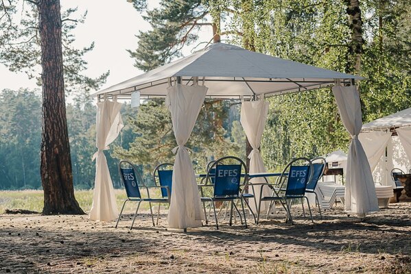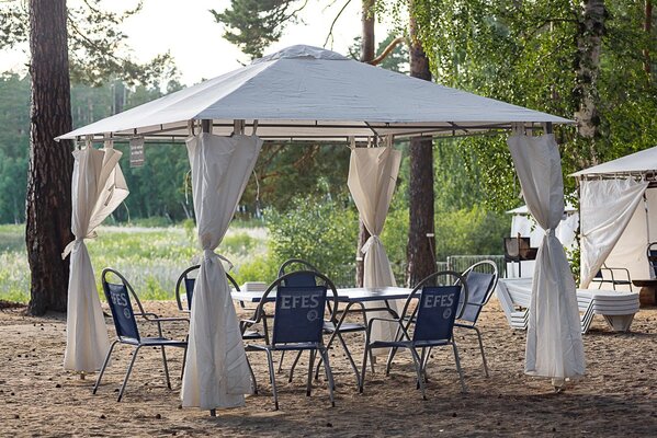 Маленькие шатры расположены на пляже курорта. Минимальный срок аренды — 2 часа. Уголь, дрова, розжиг, шампуры/решетки — не включены в стоимость.
