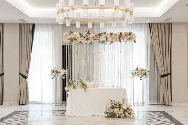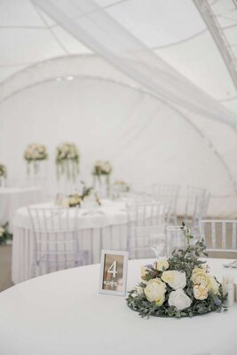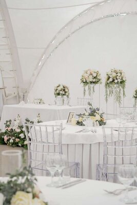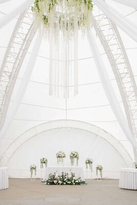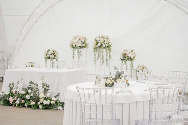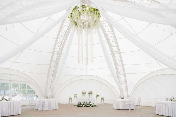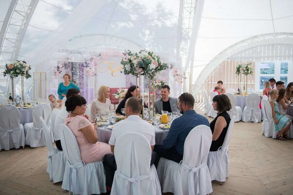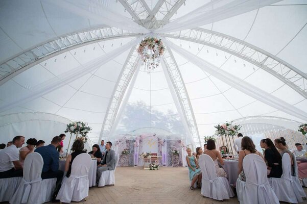 Размеры свадебного шатра позволяют разместить в нем до 120 гостей.