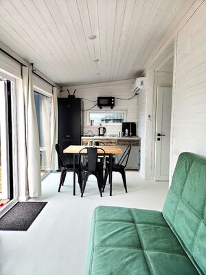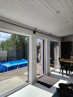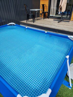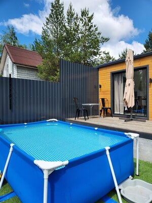 «БукинЛес» уютно разместит до четырех гостей, предлагая всё необходимое для безмятежного пребывания. На небольшой террасе за домом можно насладиться свежим воздухом и живописными видами, а рядом вас ждет каркасный бассейн с зонтом — идеальное место для освежающих водных процедур и солнечных ванн.