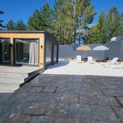 Лето здесь — время беззаботных радостей! Каркасный бассейн приглашает к освежающим купаниям, а собственная песчаная зона создает ощущение настоящего пляжного отдыха. Расслабьтесь на шезлонгах под зонтами или устройте вкусный пикник с использованием мангала.