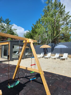 Детская площадка на мини-пляже предлагает всем малышам безопасное пространство для игры. Песчаная зона с резиновым покрытием с увлекательной горкой и качелями, которые можно адаптировать под возраст маленьких гостей, обеспечивая при этом максимальное удовольствие и безопасность.