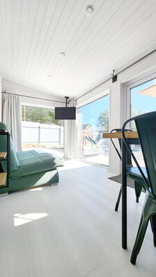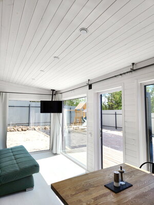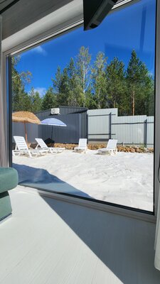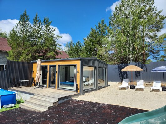 Погрузитесь в атмосферу гармонии и спокойствия в доме «БукинПляж», рассчитанном на комфортное размещение до четырех гостей. Панорамные окна открывают живописные виды, позволяя родителям без труда наблюдать за детьми, играющими на свежем воздухе.