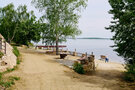 Любители активного отдыха оценят спортивные площадки для волейбола, футбола и тенниса. Живописный остров, соединенный с базой понтонным мостом, предлагает возможности для купания, кемпинга и посещения бани с выходом к озеру.