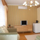 В Русской бане достаточно высокая температура воздуха - до 90 градусов и высокая относительная влажность 80-90%. Влажный воздух имеет большую теплоемкость, чем сухой, и соответственно большую теплоотдачу. Важная особенность русской бани - сочетание контрастных процедур. После горячего воздуха парилки можно окунуться в бассейн. Русская баня немыслима без веника, в санатории предлагают Вам на выбор: березовые, дубовые, липовые и эвкалиптовые веники. В бане есть комната для отдыха с телевизором. Для Вас администратор бани приготовит душистые травяные чаи. Баня вмещает до 15 человек.