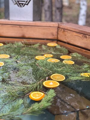 Гости могут погрузиться в атмосферу настоящей русской бани на дровах. В их распоряжении богатый выбор веников: ароматные еловые, целебные пихтовые, душистые можжевеловые и традиционные березовые.