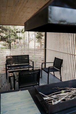Главная жемчужина «Дома под соснами» — настоящая русская баня на дровах с богатым выбором веников, от душистой ели до целебного можжевельника. А для полного расслабления ждет банный чан из нержавеющей стали и лиственницы, где можно создать индивидуальный ритуал оздоровления с ароматическими запарками и эфирными маслами.