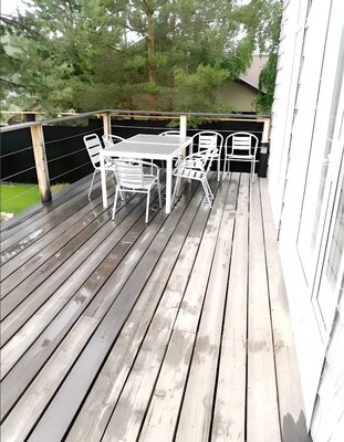 - В Дуплексе 1 кондиционер на весь дом и плотные занавески на обоих этажах, на солнечной стороне дома.