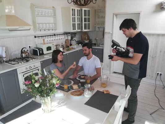 В двух километрах расположен ресторан «Гости», а для ценителей грузинской кухни не далеко от него находится ресторан «Грузинский Двор». Рядом можно устроить свадебный банкет в «Таёжном Хуторе» всего в 200 метрах от дома, где могут разместиться до 40 гостей.