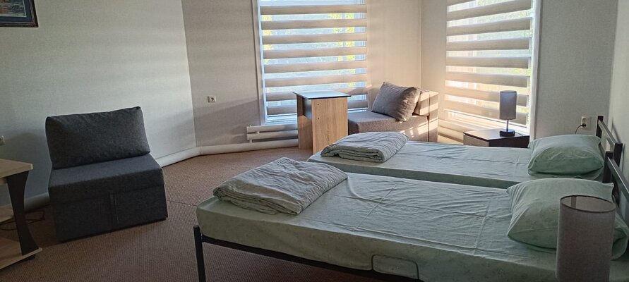 «Еловый мыс» — это двухэтажный гостевой дом, расположенный на живописном холме в Нязепетровске. Отсюда начинается живописная экологическая тропа, уводящая в сказочный еловый лес. Дом предлагает комфортное размещение для шестнадцати человек, с уютными спальнями, креслами-кроватями, полностью оборудованной кухней-гостиной и санузлами на каждом этаже. Из окон открываются потрясающие виды на еловые горы и спокойное озеро, а чистая река Нязя добавляет умиротворения. Вся городская инфраструктура, включая спортивную школу с зимними развлечениями и парки с набережной, находится поблизости. «Еловый мыс» — идеальное место для полного погружения в природу и комфортного отдыха.