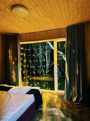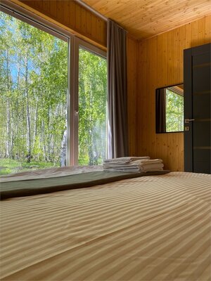 В каждом домике созданы все условия для приятного времяпрепровождения, а панорамное окно с подсветкой подчеркнет красоту окружающего пейзажа. Высокий забор вокруг каждого домика гарантирует полную конфиденциальность и уединение.