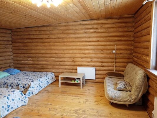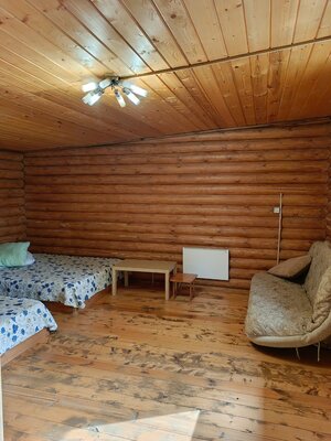 Комфортабельный дом «У озера» в живописном поселке Увильды — идеальное место для отдыха большой компании (до 11 человек). Три уютные спальни (две с собственными душевыми) предлагают комфортное размещение: в одной — две двуспальные кровати, в другой — две двуспальные кровати и двуспальный диван.