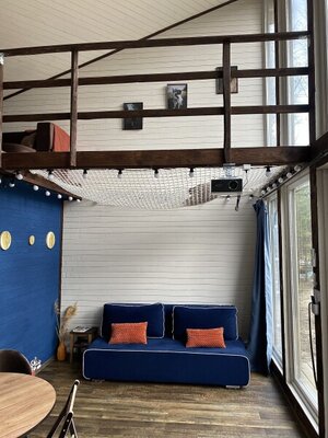 В домиках установлены проекторы и сделаны небольшие подборки фильмов (в основном это проверенные временем семейные фильмы или романтические комедии — то, что предполагает атмосфера отдыха).