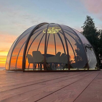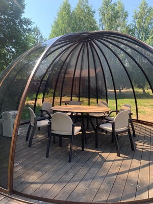 Вместительный гриль-купол рассчитан на компанию до 12 человек. Здесь вы сможете насладиться живописными видами озера Увильды, провести время на свежем воздухе и приготовить аппетитные блюда на гриле, создавая уютную и расслабляющую атмосферу. Аренда включает в себя использование мангала.