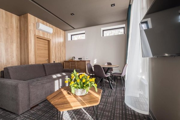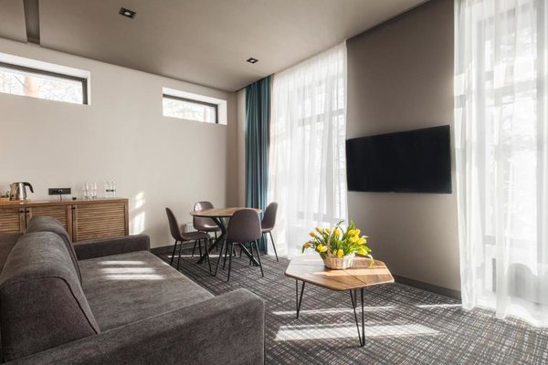 В апартаментах есть вся необходимая техника, чувствуешь себя как дома 👍Живописная природа, можно гулять по территории целый день, есть прокат , лодки сапы, велосипеды , детские площадки , спорт площадки . Пляж чистый , вода тёплая .