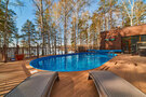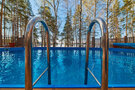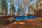 Бассейн с прекрасным видом на озеро, вмещающий до 15 человек. На территории бассейна также имеется открытое джакузи и сауна с панорамным видом, включающая раздевалки и душевые.