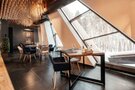 Изысканная европейская кухня со скандинавским акцентом, авторская подача блюд от шеф-повара, уютная атмосфера эко-пространства, панорамные окна и невероятные закаты за окном. В ресторане проводятся вечера живой музыки, винные дегустации и прочие мероприятия.