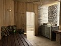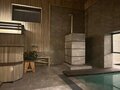 - кедровой парной с разноуровневыми полками и выплывом в бассейн для коллективных программ парения;