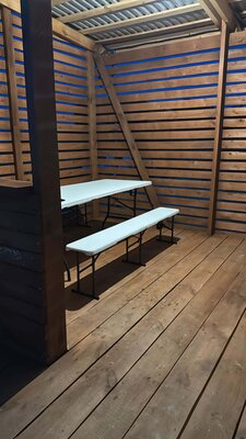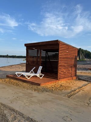На берегу озера расположены уютные беседки, каждая из них оборудована мангалом, удобным столом, двумя лавочками и парами комфортных лежаков на террасе. Это идеальное место для приготовления ароматных блюд, расслабления и наслаждения красотой природы.