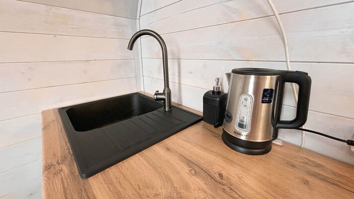 Кристально чистые воды озера Калды и благоустроенный пляж приглашают к безмятежному отдыху: загорайте на шезлонгах, наслаждайтесь тенью зонтов или освежающим плаванием. Для уютных посиделок предусмотрены беседки и специальные зоны для мангала, идеальные для пикников в кругу близких.