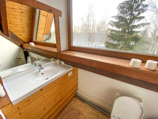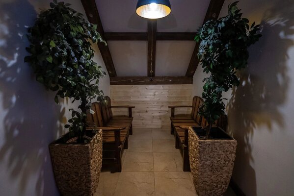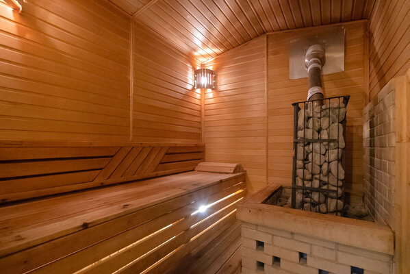 Уютная и комфортная сауна, способная вместить до шести человек. Здесь вы сможете насладиться всеми преимуществами этого замечательного места: принять душ, испытать освежающий водопад из обливного ведра и ощутить благотворное влияние пара. А после — отдохнуть в уютной комнате отдыха или на веранде.