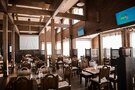 В ресторане три зала: маленькая веранда, вместимостью до 25 посадочных мест, большая веранда, вместимостью до 70 посадочных мест, основной зал, вместимостью до 90 мест.