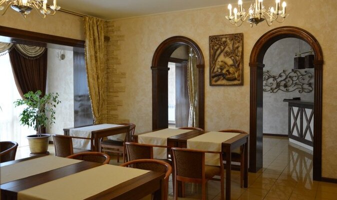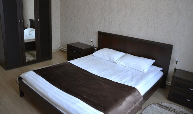 Отель представлен современным 2-этажным зданием с собственной огороженной территорией, где есть зона отдыха, беседки и парковка. Просторные номера, оборудованы всем необходимым для комфортного проживания: удобная мебель, ТВ, сейф, бесплатный Wi-Fi, ванная комната с душем, халаты, тапочки, набор полотенец и туалетные принадлежности.