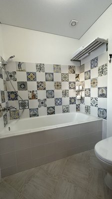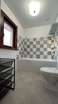 Отдельностоящая ванна в стиле прованс, большая душевая зона с итальянской сантехникой помогут расслабиться и отдохнуть от городской суеты.