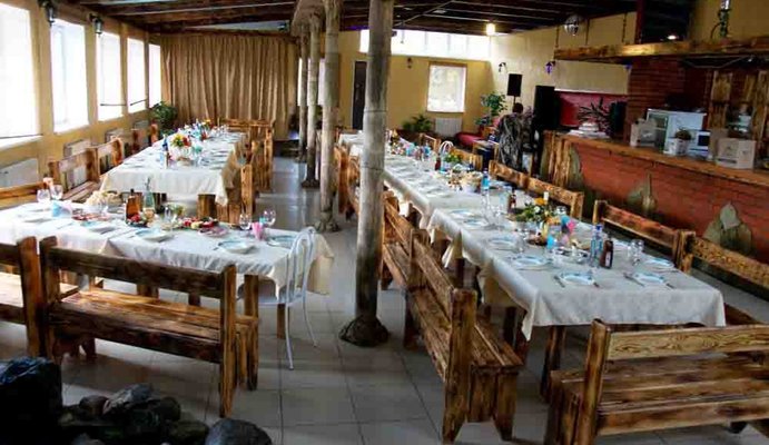На территории имеются – столовая (завтраки включены), бильярд, небольшая футбольная площадка, волейбольная площадка (песок), настольный теннис, мангальные зоны, беседки, открытые и закрытые площадки, экипировка для пейнтбола, качели, детские площадки, караоке-зал. Две русские бани на берегу озера (зимой прорубь).