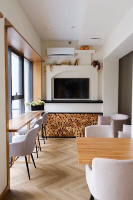 Ресторан СПА-отеля «Увельские Курорты» является неотъемлемой частью отдыха. Панорамные окна открывают живописный вид на озеро, а уютная обстановка и атмосфера способствуют расслаблению.