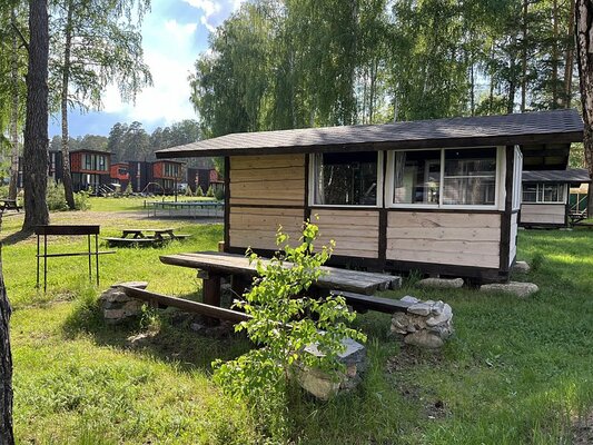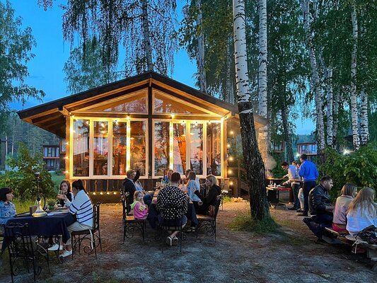 На территории базы отдыха «Тургояк шале» функционирует летнее кафе, идеально подходящее для встреч с семьей и друзьями в праздничной атмосфере.