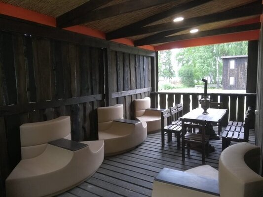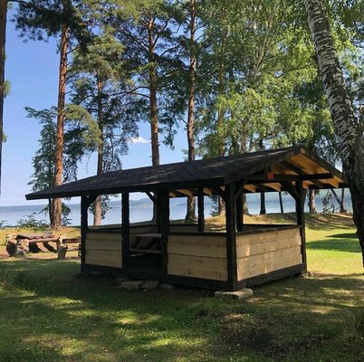 Расположенная на живописном берегу озера, баня с просторной верандой и уютной мангальной зоной приглашает окунуться в традиции оздоровительного и расслабляющего отдыха. Рядом расположен банный чан.