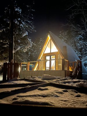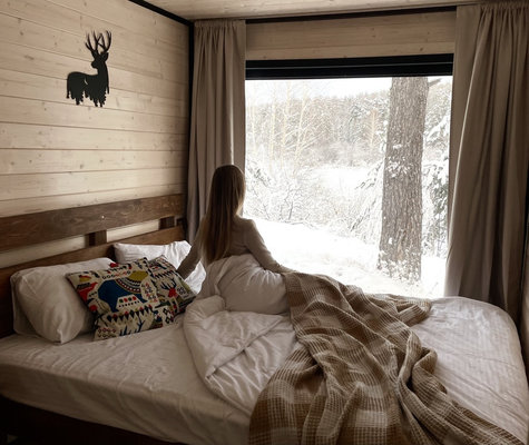 «URAL Glamp» — это уютные скандинавские домики с панорамными окнами, открывающими вид на озеро и лес, рассчитанные на 2-4 человек.