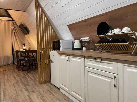 Уральский глэмпинг предлагает вам свидание с природой, отказ от шума цивилизации и возможность побыть наедине с самим собой. Внутри маленьких уютных домиков — спальные места с белоснежным бельём, санузел, тёплый пол и оборудованная всем необходимым кухня. Снаружи — крытые террасы с качелями и гамаками, мангальная зона и возможность искупаться в горячем банном чане.