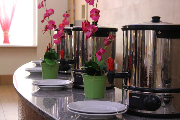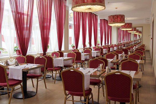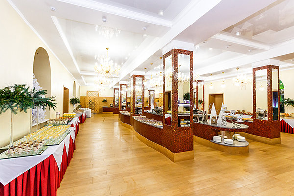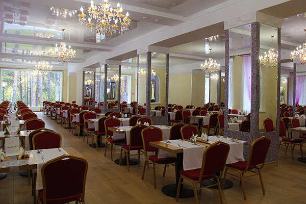 Основной ресторан — находится в отдельном здании в 100 м от корпуса (питание «шведский стол», основной зал и зал «Люкс»), ресторан «Акватория» находится на на 2 этаже водно-оздоровительного комплекса; ресторан «Шинок» в отдельном здании в 50 м от административного корпуса, у