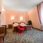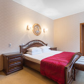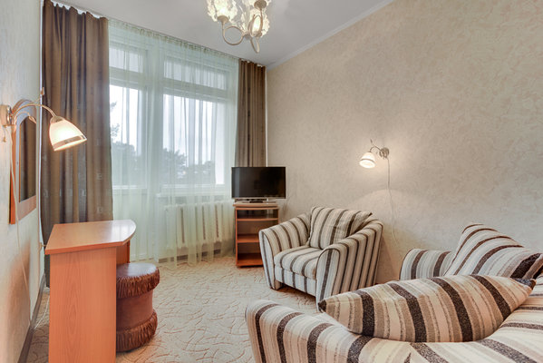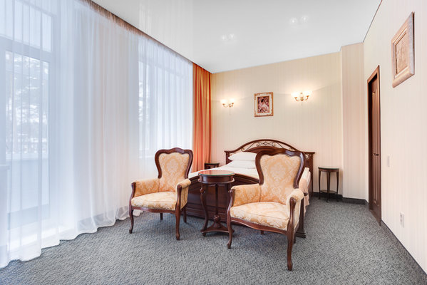 В стоимость остальных номеров включено лечение "стандарт". Доплата за лечение люкс - 400 руб. на чел/сутки.