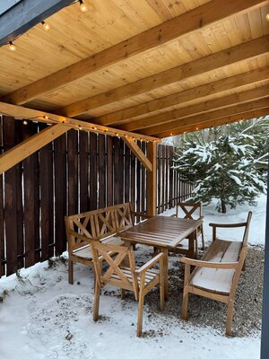 Каждый барнхаус имеет собственную территорию с мангалом и беседкой, где вы сможете насладиться шашлыками на свежем воздухе и тишиной чувашского леса в кругу близких.
