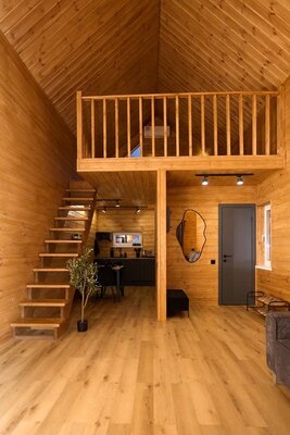 Каждый барнхаус – это эксклюзивный дизайн и комфортабельный второй этаж. К вашим услугам полностью оборудованная кухня, современный санузел со всеми удобствами (шампуни, гели, полотенца, фен), Wi-Fi и ТВ.