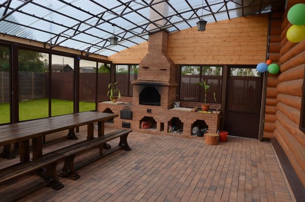 Это идеальное место для общения, пения под гитару и даже для того, чтобы устроить небольшую дискотеку. А при прохладной или дождливой погоде можно укрыться в просторной крытой веранде.